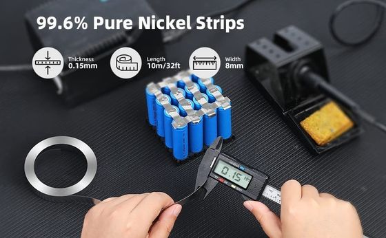 Saf nikel şeridi 0.15m 0.2mm kalınlığında ve 23.4 pitch mesafesi ile batarya için.